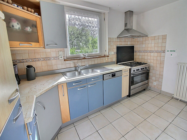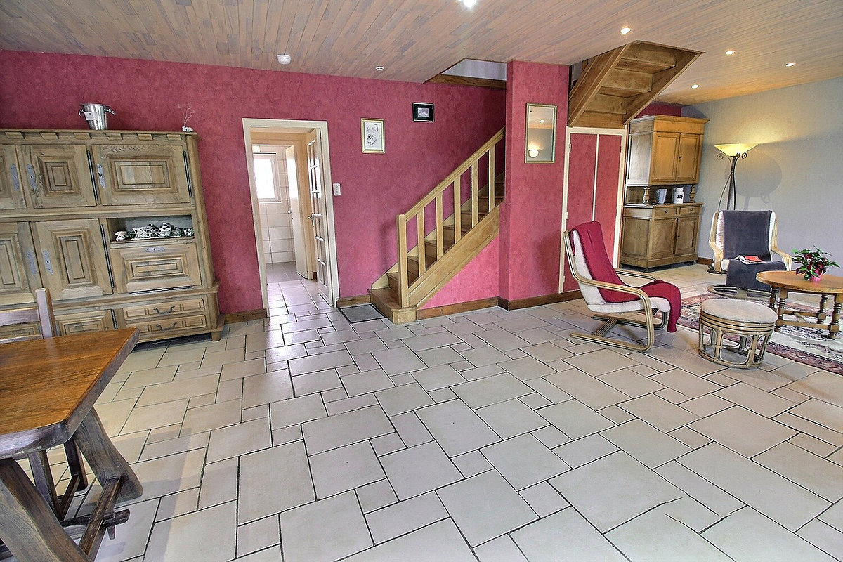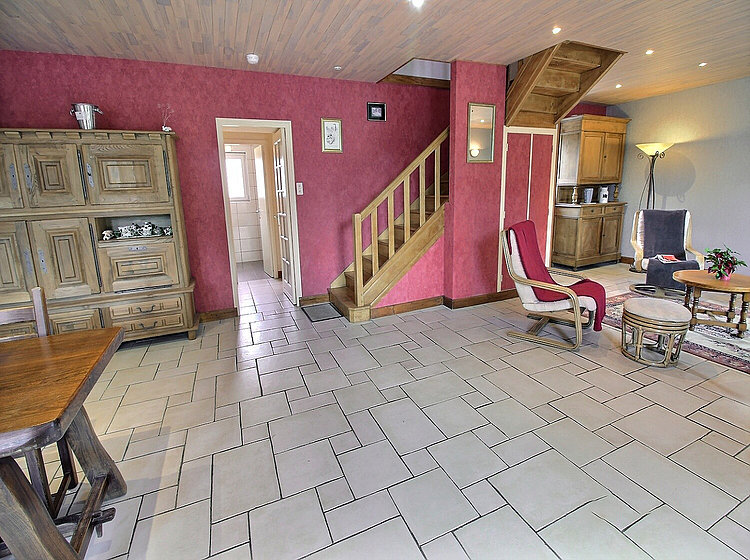 Séjour salon de 60 m2, cuisine aménagée, salle de bains et WC indépendant.